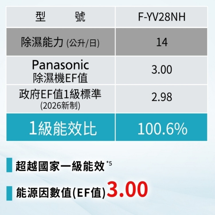 Panasonic 國際牌 除濕機 14公升/日、變頻空氣清淨除濕機 F-YV28NH (適用18坪)